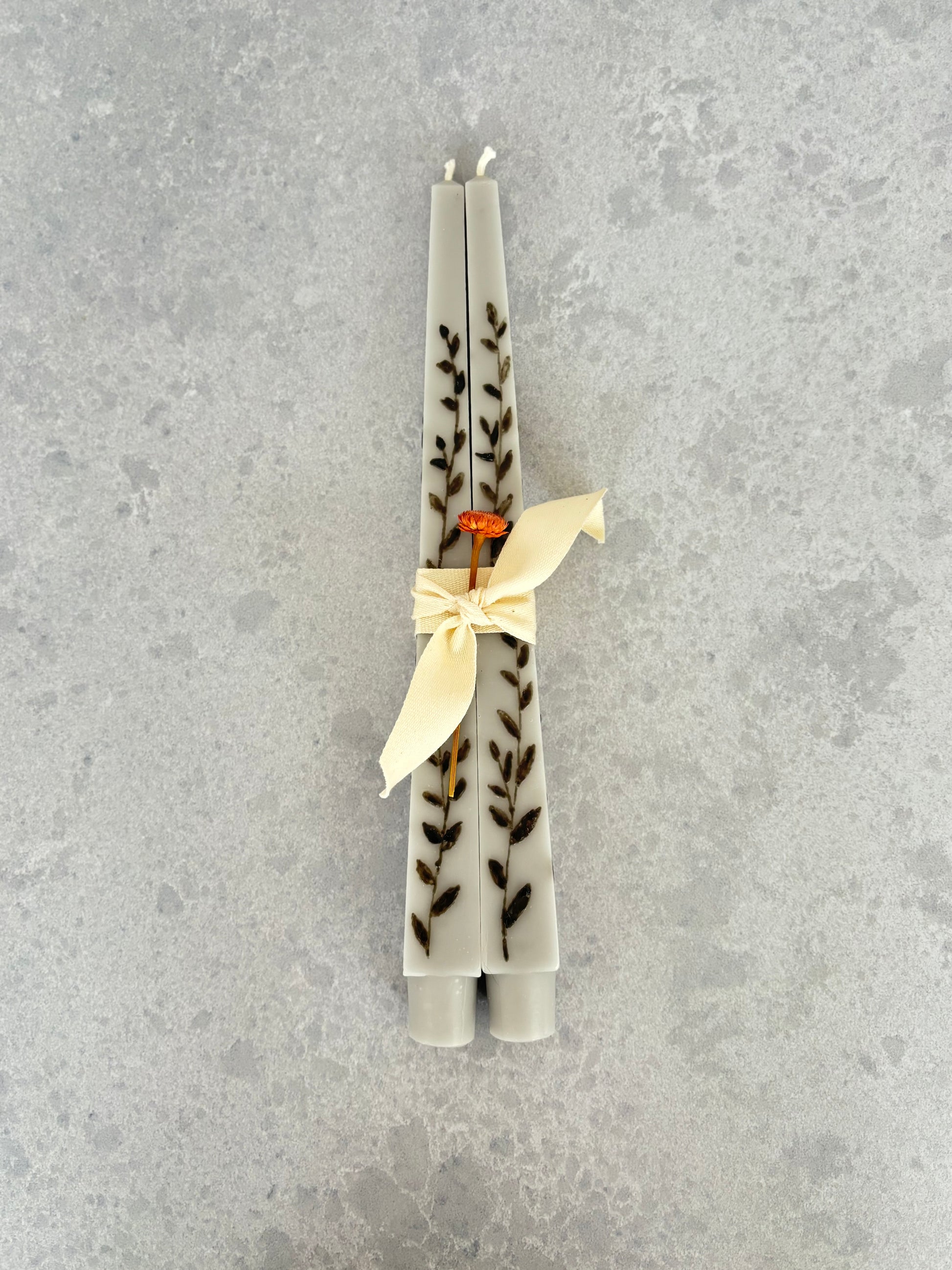 Add beauty and charm to any setting with these special beeswax taper candles. Each pair is hand painted by local artist, Annie Simcoe from Petunia Patch and ABPH Art. Each candle is meticulously crafted with an artisan touch, ensuring unique and intricate designs that elevate your space. Painted with beeswax, not acrylic paint.