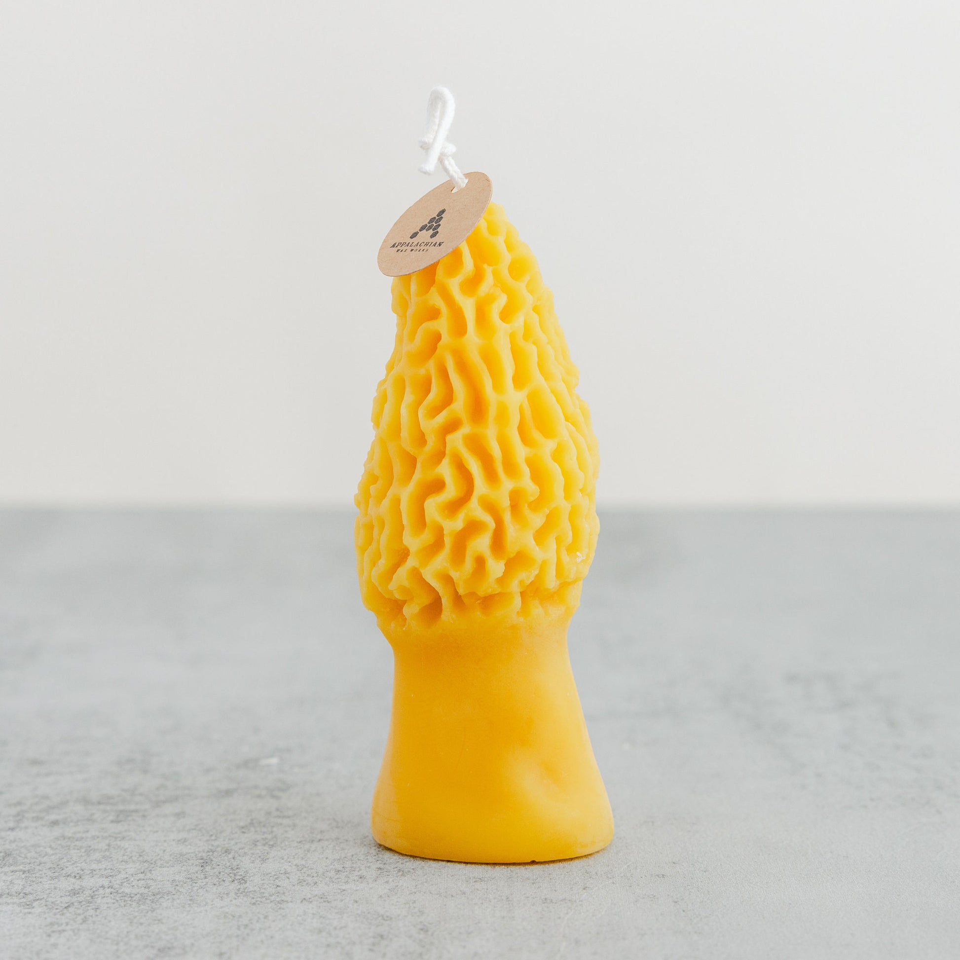 Delight in the intricate detailing of these charming candles, molded to replicate the beloved morel mushroom, a symbol of the Appalachian forest's bounty and mystery.