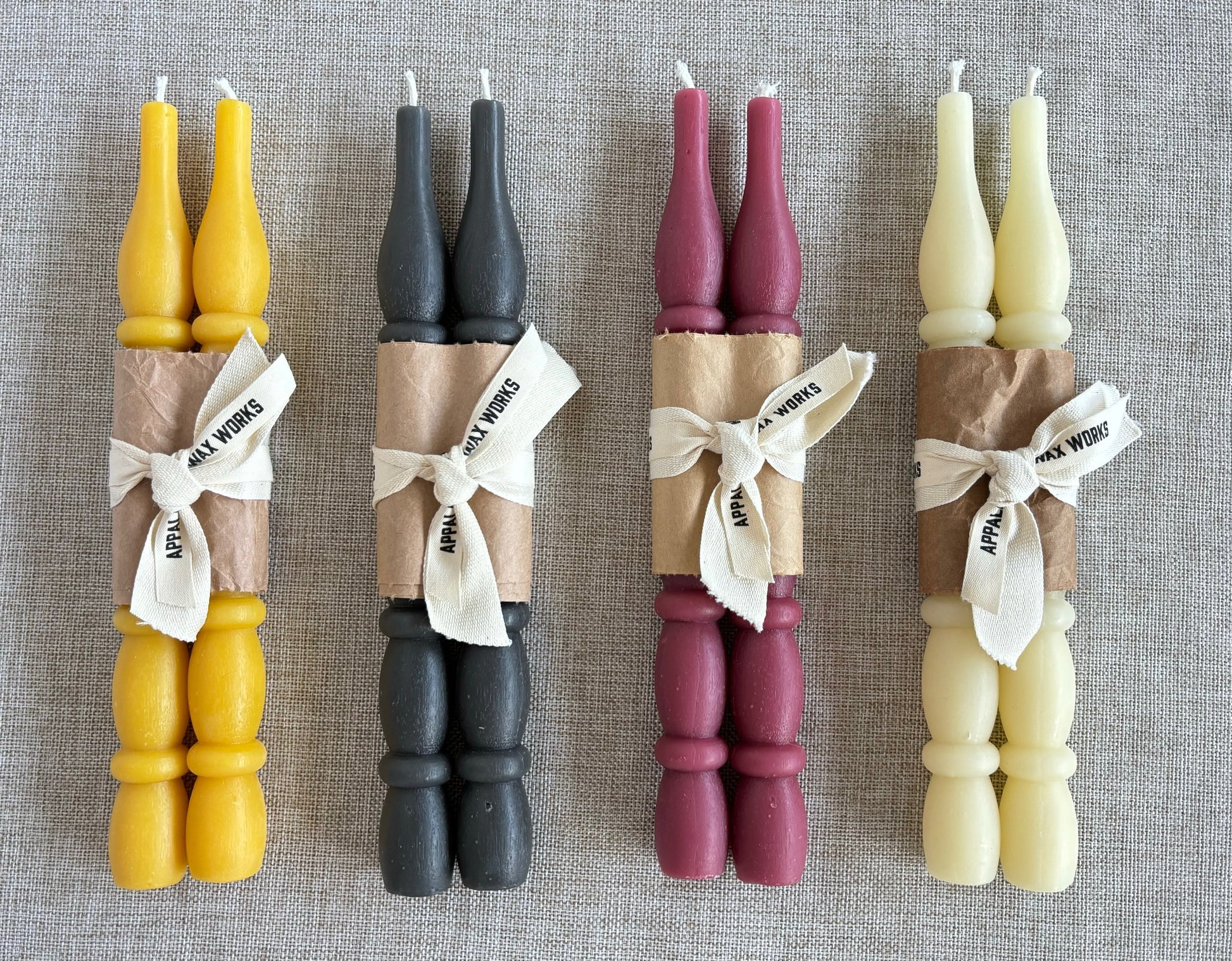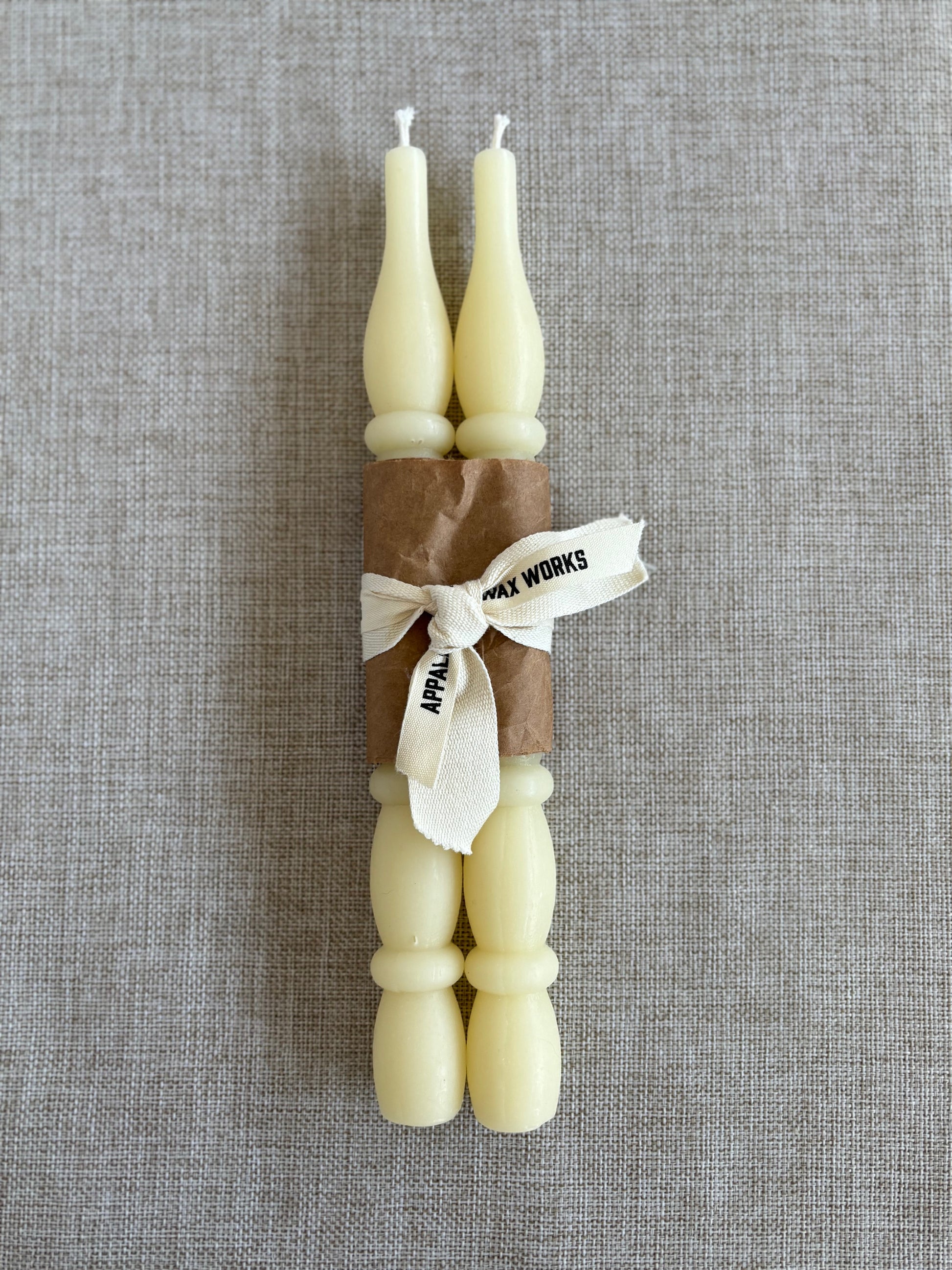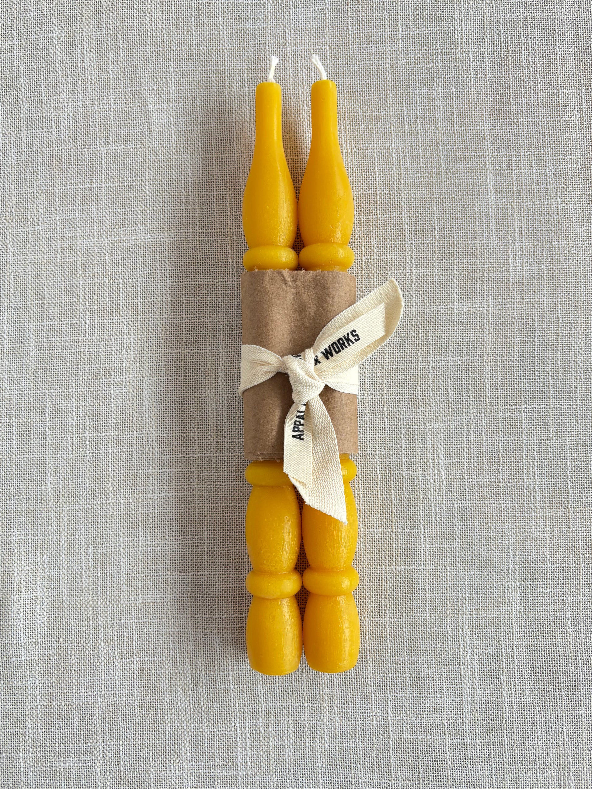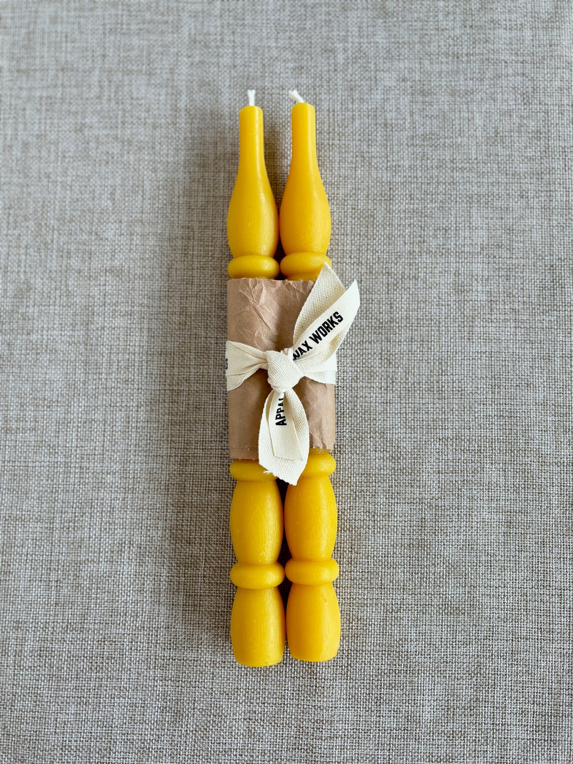 Introducing our beautifully crafted beeswax taper candle in a unique spindle shape. This elegant design combines the warm glow of natural beeswax with an eye-catching, refined silhouette. Hand-poured from 100% pure beeswax, it emits a soft, honey-like scent while burning cleanly and evenly. Perfect for adding a touch of charm to any dining table, mantelpiece, or special occasion. The spindle shape not only enhances its aesthetic appeal but also ensures a steady, slow burn for hours of enjoyment. A must-have for those who appreciate both style and sustainability.