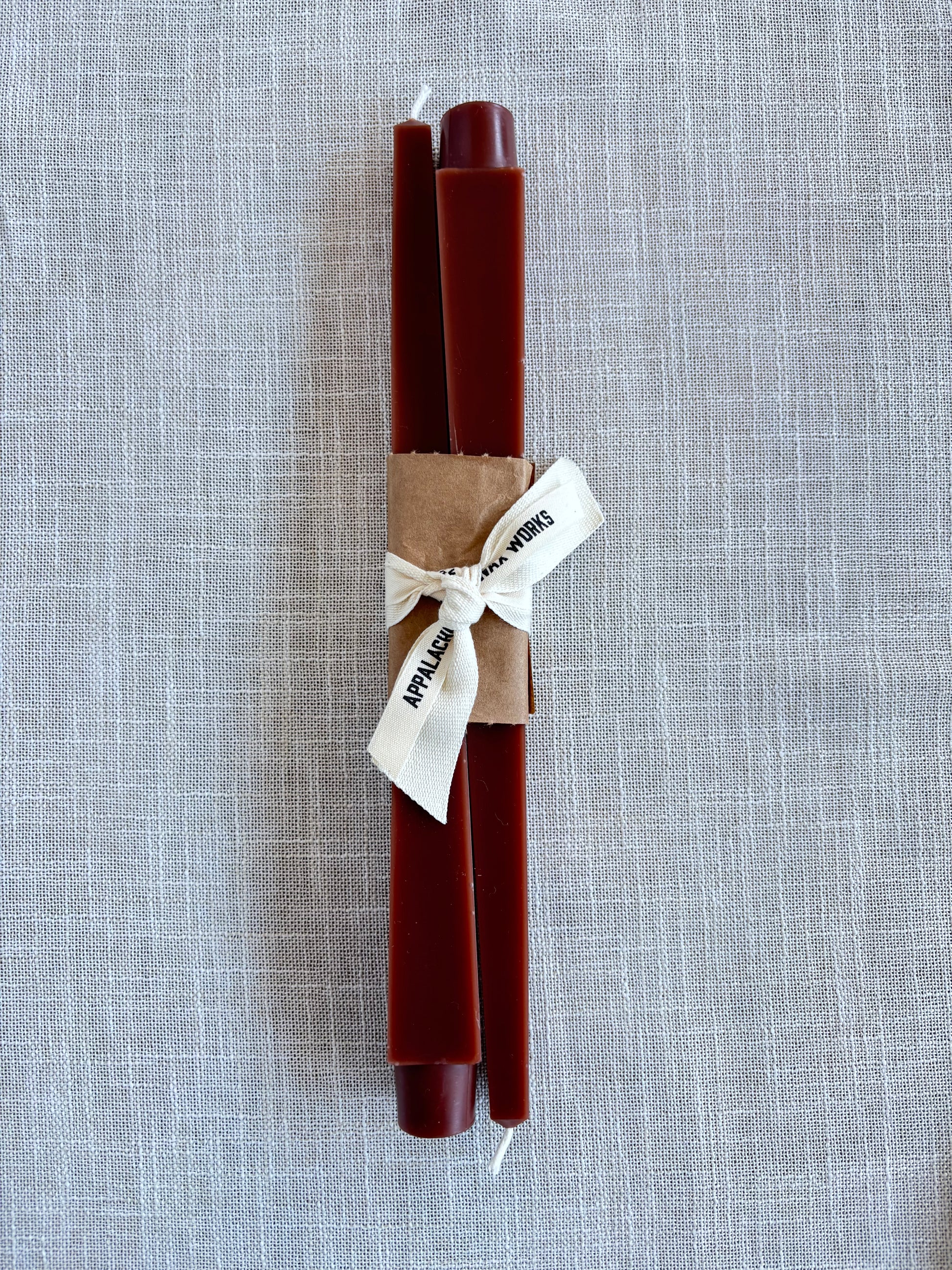 Burn tips: Trim wick to 1/4" before lighting candle each and every time. Burn tapers in an area free of drafts or dripping may occur. Keep out of reach of children and pets.